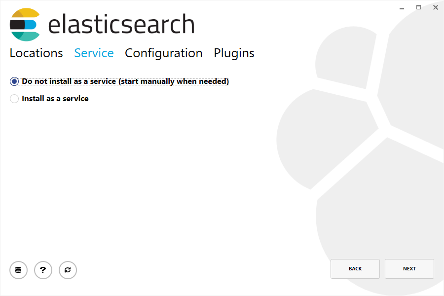 然后选择是作为服务安装,还是根据需要手动启动Elasticsearch。 为了与tar示例对应,请选择不安装为服务: